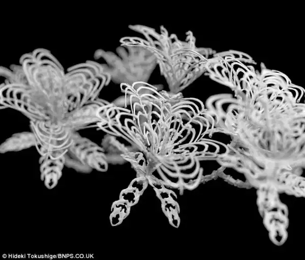 Все эти скульптуры цветов изготовлены японским скульптором Хидеки Токусиге из костей умерших мышей и крыс.Свою коллекцию он назвал «Хонебана» — костяные цветы. Таким образом Хидеки хочет почтить цикл жизни и смерти и подчеркнуть в нем элемент перерождения. Так мертвые животные у Хидеки обретают свою вторую жизнь в цветах.
