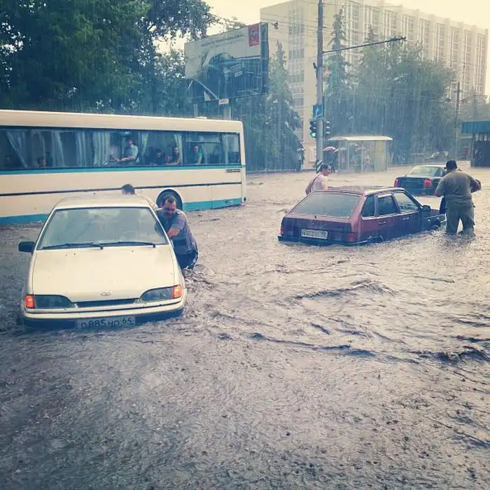 Настоящее стихийное бедствие случилось в Саратове. Там 24го июня произошло серьезное наводнение, которое привело к множеству аварий на дорогах, а также затопило некоторые улицы города. Замглавы администрации города Дмитрий Федотов во всем винит сильные и продолжительные дожди, а о том, что ливневые канализации просто-напросто не работают, он решил промолчать.