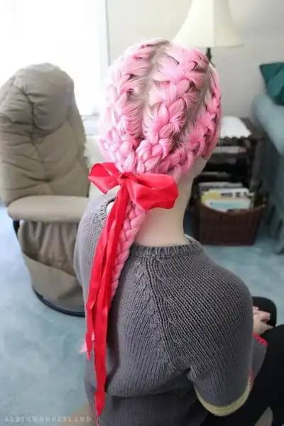 С цветными волосами.