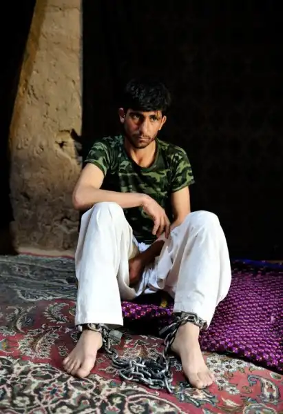 30-летний Дауд Мохаммед пристрастился к героину. Его мать приковала его ноги так, что он не может пойти и купить наркотики.