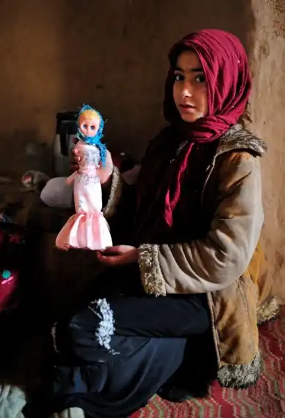 11-летняя Фарзана играет с куклой после употребления чистого героина.