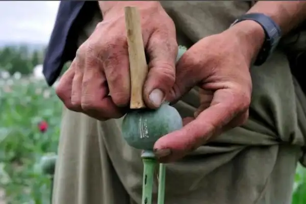 Мужчина прокалывает маковую коробочку в провинции Бадахшан, на северо-востоке Афганистана.