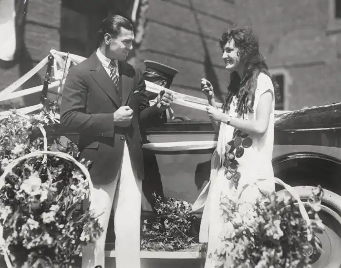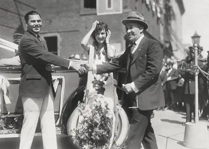 Позирует с боксером Jack Dempesy, супертяжеловесом.