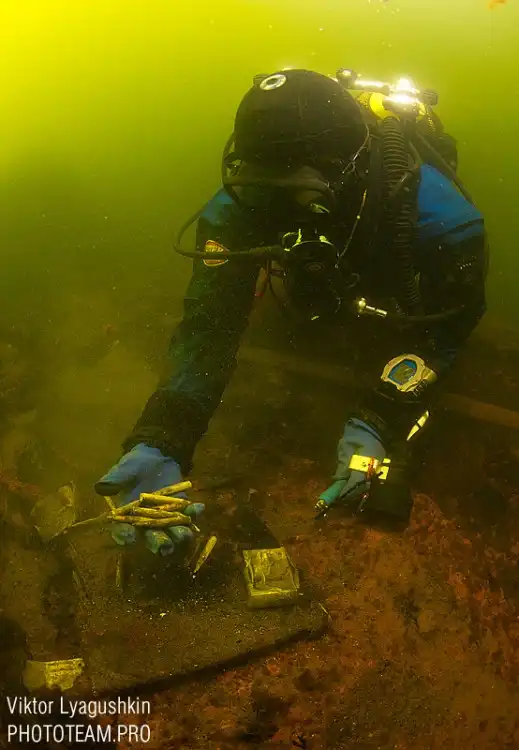 Все отправили на экспертизу. Из интересных кораблей — шведский корабль, который еще не идентифицирован. Погиб во время Выборского сражения около Березовых островов. На борту четырехфутовая пушка и скелет матроса около нее. Видимо так и не ушел со своего поста.