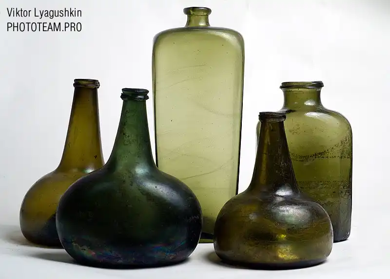 Коллекция бутылок. На самом деле бутылки характерны для своего времени и важны для идентификации. Это была вещь отнюдь не одноразовая как сейчас и служили они долго.
