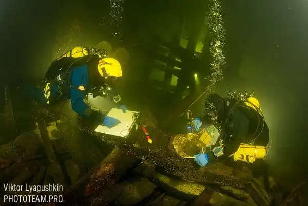 После того как корабль найден, начинается самое интересное. Команда водолазов ныряет и пытается идентифицировать корабль. Сделать это не очень просто — несмотря на то, что в Балтийском море сохранность объектов очень высокая (из–за низкой солености там мало червячка–древоточца) чаще всего сразу понять, что это за груда досок лежит невозможно. Редкий случай, когда корабль был идентифицирован сразу: парусно–винтовой фрегат «Олег» затонувшийв 1859 году во время учений.