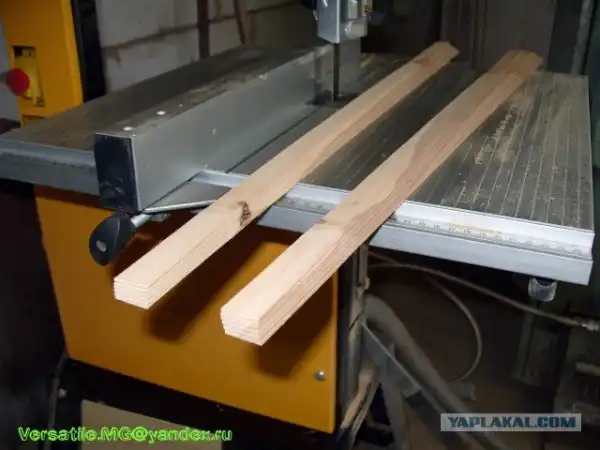 Для изготовления потребовался кусок ольховой доски, которую я распилил на тонкие ламельки на ленточной пиле. Если у кого нет пилы, то можно попроситься в столярке напилить, или накупить тонких деревянных линеек и клеить из них :)