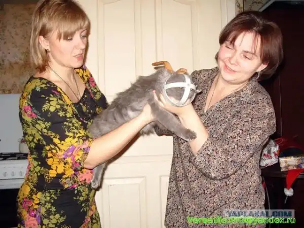 Жена с подругой примеряли переносилку к другому коту. Кот почему-то вырывался. Видимо, не привык еще к столь удобному средству передвижения