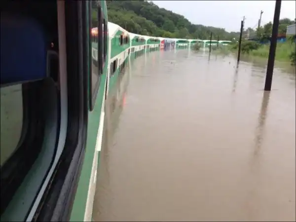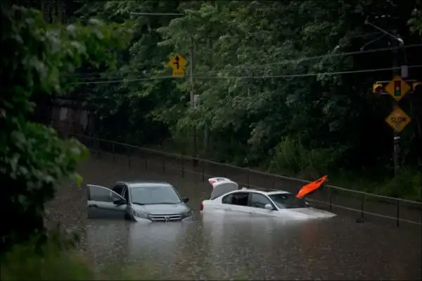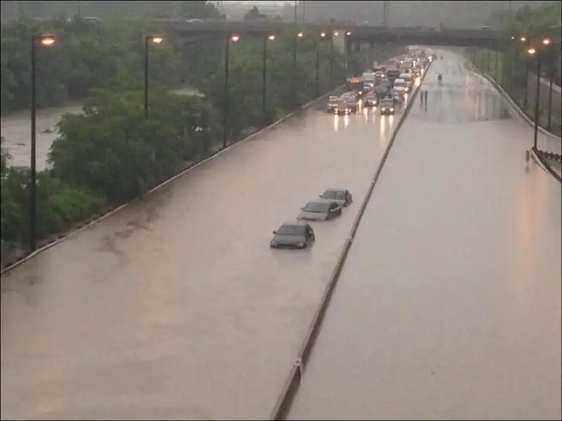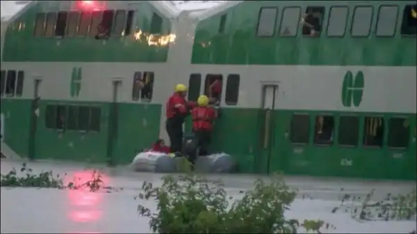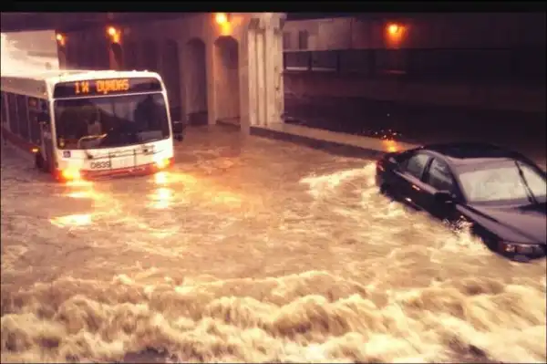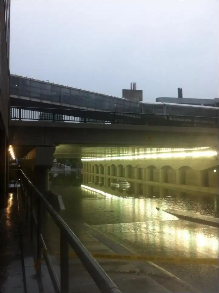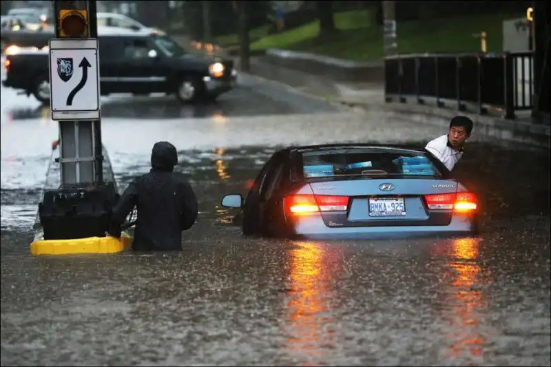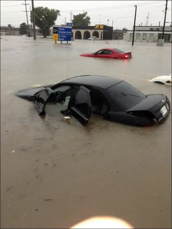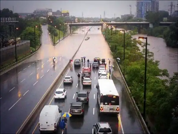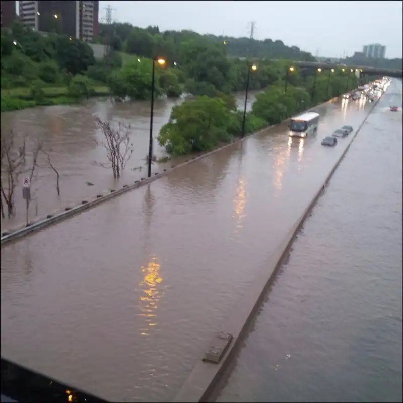 Вчерашние ливневые дожди в Торонто вызвали сильное наводнение. Улицы полностью затоплены, глубина местами доходит до 2 метров. В городе частично отключено электроснабжение.