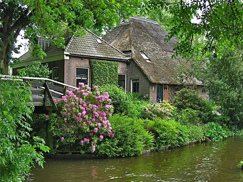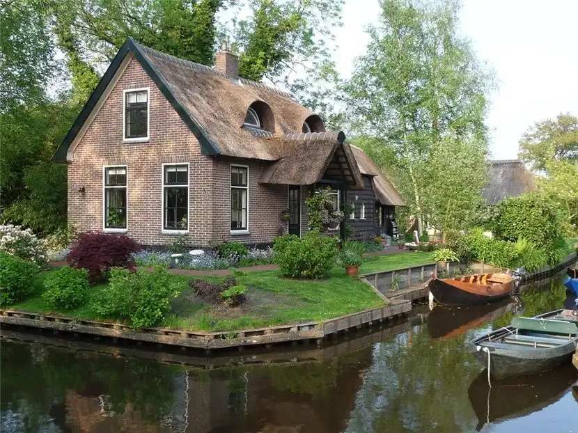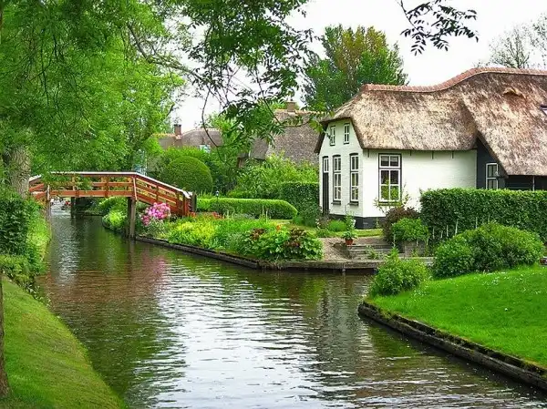 Эта уникальная деревня под названием Гитхорн находится в Голландии, а известна она благодаря тому, что там нет ни одного автомобиля и ни одной дороги. Гитхорн был основан в далеком 1230 году, а построена эта деревня на водных каналах с общей протяжённостью около 7,5 км. Очень красивое и необычное место, которое зачастую называют Голландской Венецией.