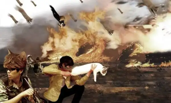 Заказ: Это фото сделано в том месте, где снималась самая драматичная сцена фильма «Мятная конфета». Пожалуйста, сделайте, чтобы всё выглядело опасно, как в фильме: добавьте подъезжающий поезд»