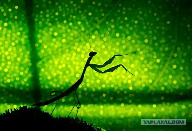 Гигантский длинноногий кузнечик. Эти насекомые живут в Малайзии. Они относятся к типу членистоногих, отряда прямокрылых. Питаются кузнечики растениями. Их крылья довольно необычные, они в расправленном состоянии очень похожи на листья, такие же рельефные, с пятнами и даже отверстиями. Однако длинные лапы не помогают кузнечикам скакать. Насекомое предпочитает медленно передвигаться и изредка летать. В течение дня кузнечики стремятся сидеть неподвижно, чтобы избежать охоты хищников. А вот ночью они с помощью своих длинных антенн начинают искать пищу и пару. Самцы громко и пронзительно кричат, чтобы привлечь самок. Большинство таких кузнечиков питаются листьями, но некоторые являются активными хищниками, охотясь на других мелких насекомых.