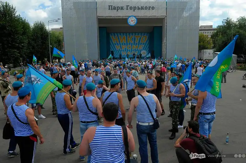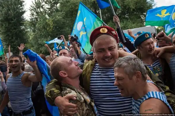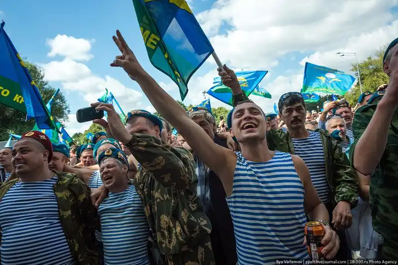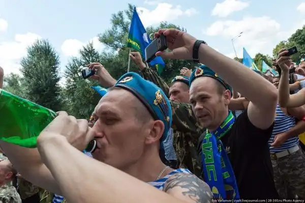 народ вот почему вы не осуждаете выпускников БАУМанки?они после защиты и вовсе катаются в эмалированных тазах по территории универа. Почему вы не осуждаете пограничников или моряков?так же весело проходят их праздники.больше чем уверен вы тут собрались по большей не служившие.на фото видно,что там "старая гвардия" десанта.люди которые служили еще по два года,у которых есть свои традиции.говорите,что они быдло?да манеры оставляют желать лучшего.но когда нужно любой ценой выполнить боевую задачу,они это сделают,как делали это в афгане,чечне и других боевых точках.