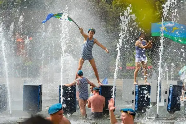 вот строители же себя так не ведут... и не празднуют с таким размахом.. хотя если подумать пользы от них больше... все мы живем в домах кем то спроектированных и кем то построенных.. и ходим в магазины кем то построенные.. те же фонтаны в которых это тупое быдло купается кем то сделаны.... так что иди вы нахер ВДВшники... умирать под пулями ваша прямая обязаность как солдат и нехер из этого нечто особенное делать.