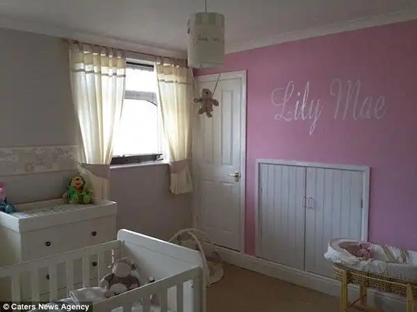 Сделали розовую комнату, с именем девочки на стене - Лили-Мэй.
