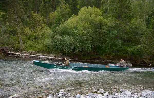 Добирались от Абазы по горной реке Абакан два дня сначала на инспекторском катере на воздушной подушке, а потом на деревянной лодке с мотором до самых верховий реки. Последние километры, до устья Ерината, где находится заимка, шли пешком под рюкзаками.