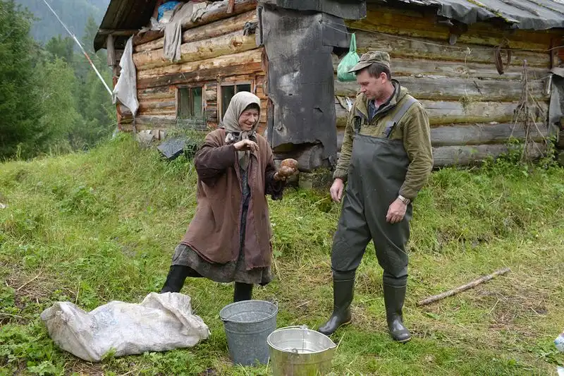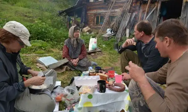 Агафью Карповну застали за молитвой. Работать в этот день она нам запретила - второго августа Церковь почитает пророка Илию. Есть ничего из принесенной нами еды не стала, но посидела с нами, хорошо поговорили. Приняла подарки - резиновые сапоги, носки, сухие и свежие фрукты. Все придирчиво осмотрела, чтобы не было штрих-кода. Обнаружила штрих-код на спичках и вернула их назад. Оказывается, что до сих пор она добывает огонь древним способом с помощью трута и кресала.