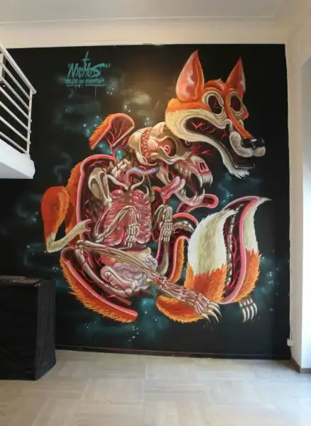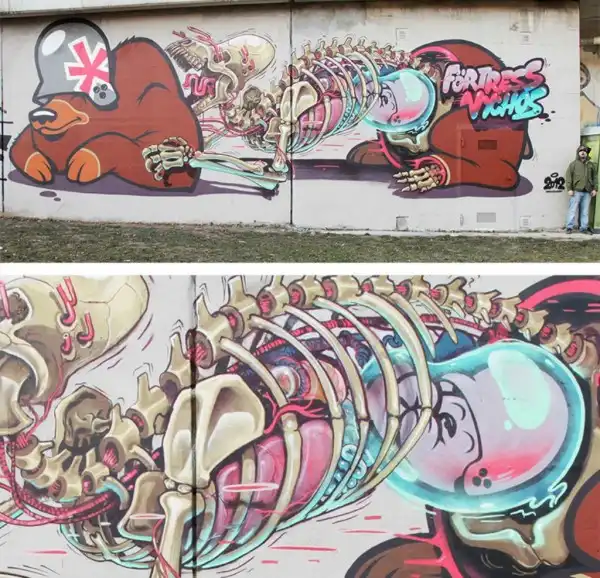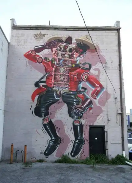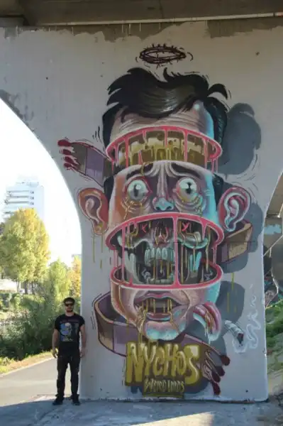 Nychos — знаменитый уличный художник, родом из Австрии. В мире стрит-арта он известен своей серией работ где он изображает различных персонажей в разобранном виде.