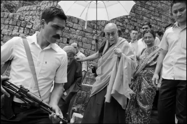 Индийский полицейский, вооруженный автоматом Калашникова входит в состав наряда охраны, задействованного для обеспечения личной безопасности Далай-ламы во время его визита в штат Химачал-Прадеш.