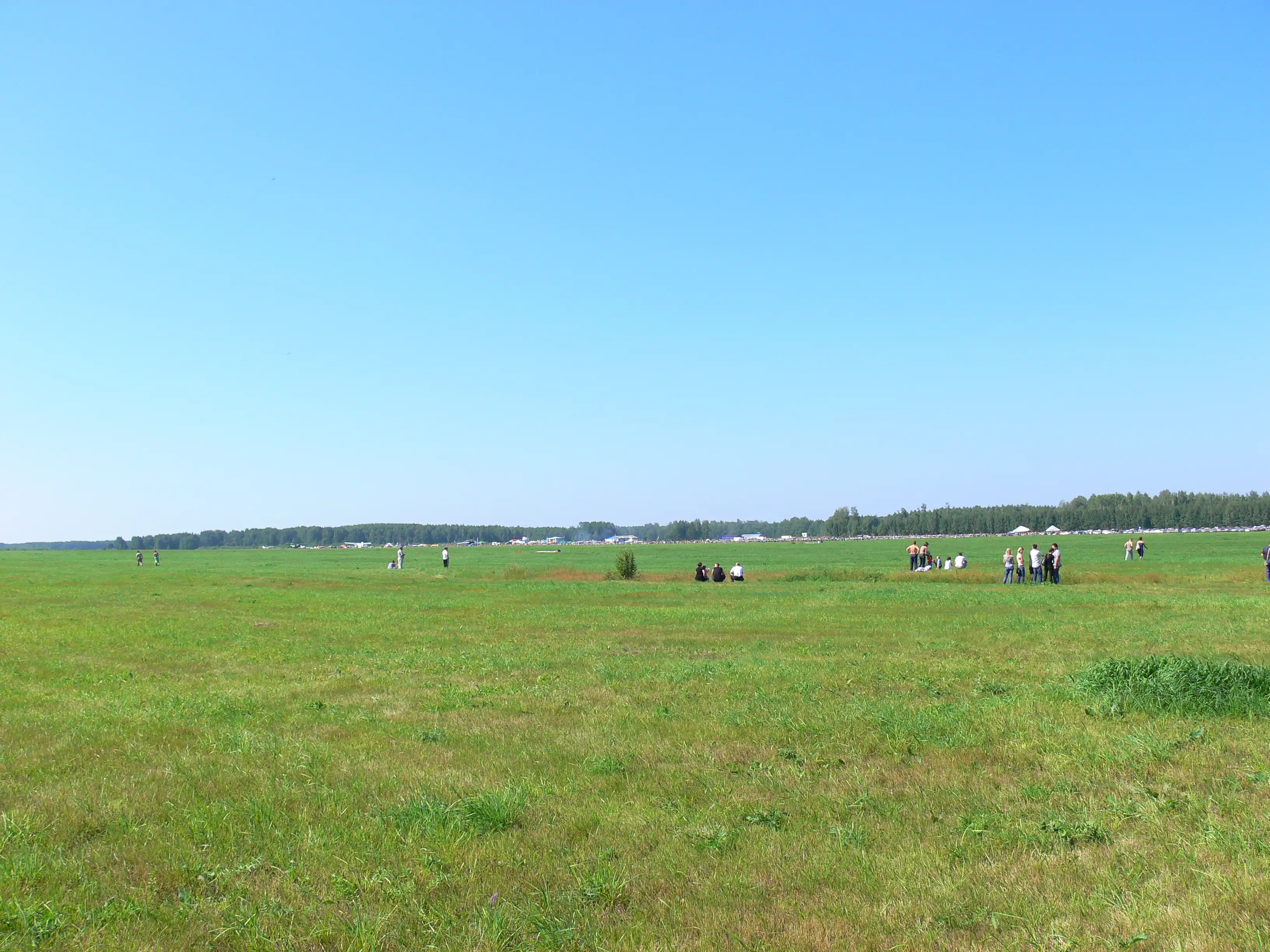 Судя по фотографиям - все было отлично. Но я была там и скажу - праздник устроен на 2ку! Во-первых, въезд, вопросы парковки, "регулировка движения" - почти нулевые - пробка началась с моста, хотя мы поехали в 12 - дабы попозже и после ажиотажа. В три часа мы, наконец, запарковались не в картошке (хотя и далеко) - хотя картошку там хорошо перемололи разъезжаясь сотни машин... Итого - на поле были только в три! к тому времени летали только ан-2, выписывая фигуры высшего пилотажа с перерывами. Еще были парашютисты. Все. Остальное - выставки и тд уже сдулись под палящим солнцем. Система пролоджи и концертная площадка находились довольно близко, вследствие чего все музыкальное сопровождение превращалось в какофонию... Самодеятельные танцы все были очень похожи... то ли это были коллективные вертолеты (махание руками а-ля лопости) - то ли я не в лучший момент подходила к сцене... Обратно поехали в пять часов - вначале несколько км по полю и пыльной дороге до машины - потом около трех часов по пробкам... Благо, при выезде на трассу гайцы встали - иначе бы к утру не выехали.. Из плюсов - шашлык вкусный, туалеты хорошо сделанные.