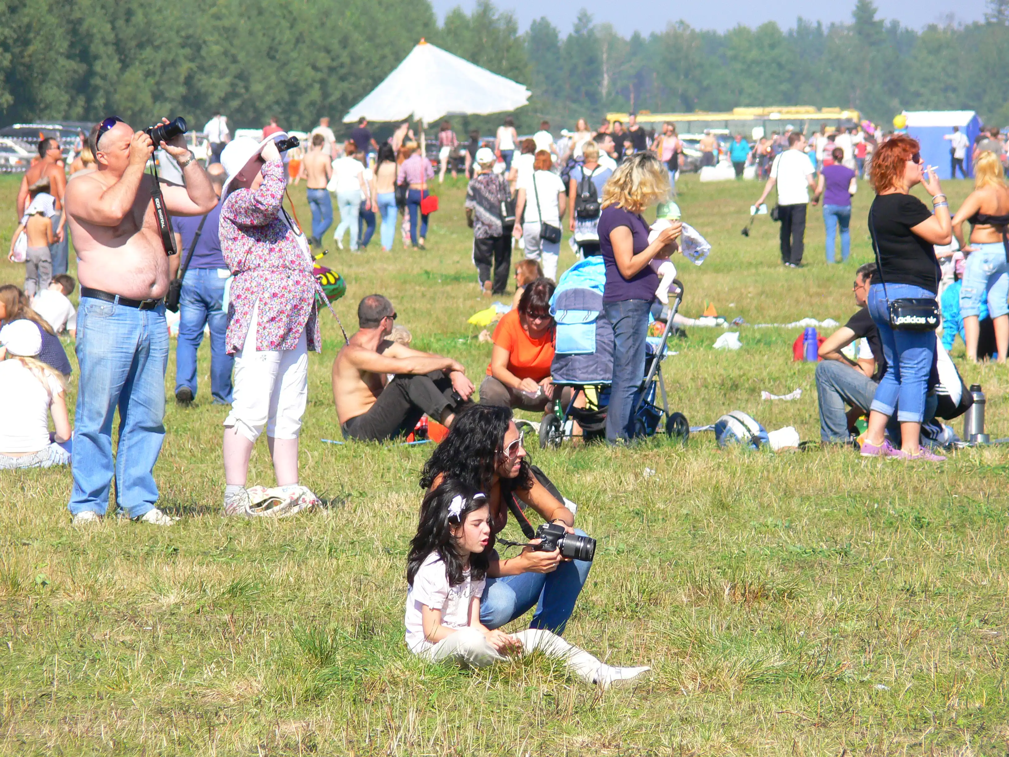 Как ни печально, но +100500. Добирались ужасно :( Машин немерено. Всё это по просёлке. Пылища, говнища( херова туча машин. Куда ехать толком не ясно. Жарень. Капец в общем( Добирались вместо ожидаемых 40 минут часа два. И то, не доехали, остановились на картофельном поле. И ещё пешком 20-30 минут шли. Зато, когда пришли, более-менее нормально стало. Газон выстрижен. Места дофига. Везде палатки с шашлыками и пловом. Приличные туалеты. Правда Белый цвет - феил. Хорошо просматривались силуэты девушек.