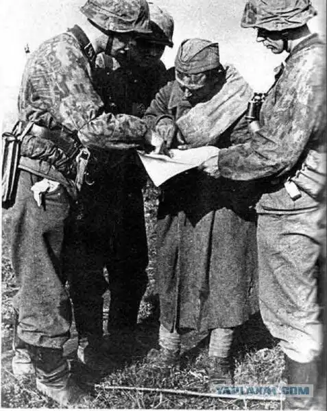 Пленный красноармеец, показывающий немцам комиссаров и коммунистов