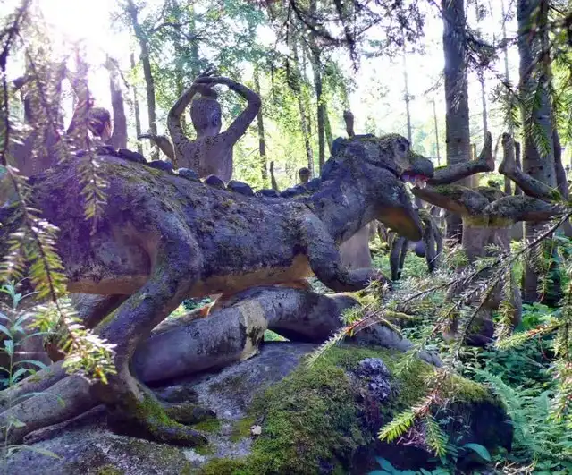 В Финляндии есть очень странное местечко под названием "Мистический лес", которое находится неподалеку от города Иматра. Честно говоря, я бы назвал это место немного по-ругому, например, "Упоротый лес" ;) В этом месте собраны все работы скульптора Вейо Рёнкёнена, который явно курит что-то очень серьезное, создавая такие скульптуры )
