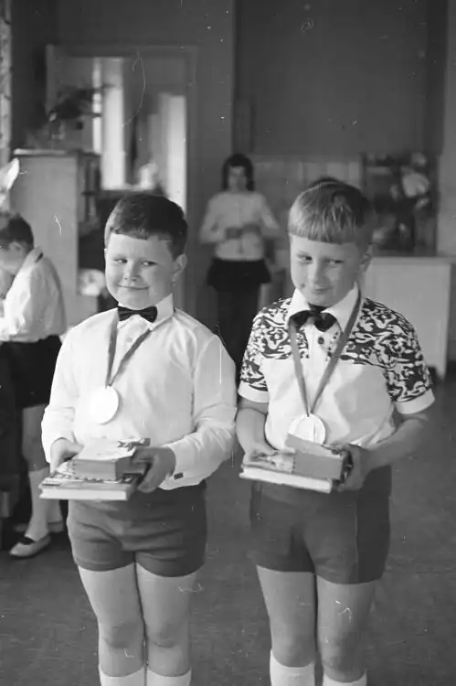 Было ли это куплено самими родителями,а такое и тогда практиковалось,да-да,скидывались и в школе тоже,но это было как то не особо заметно в финансовом плане,а может и нет,за счет бюджета,так сказать,сейчас уже даже и мама не вспомнит.