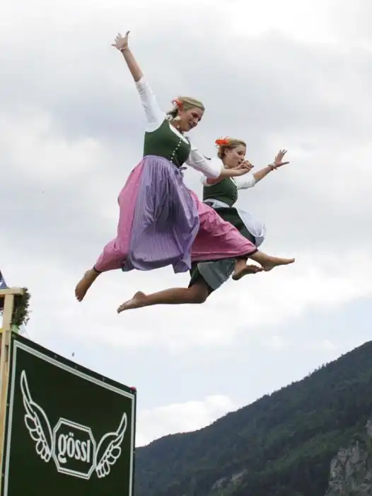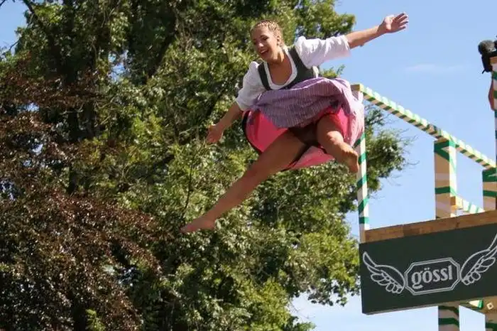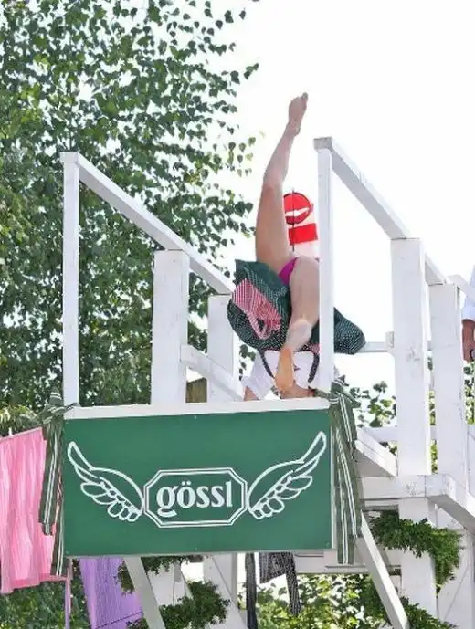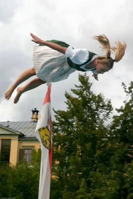 В австрийском городке Зальцбург прошел весьма необычный конкурс по прыжкам в национальных костюмах. Принять участие в нем могли только девушки, а прыгали они с вышки, конечно же, в воду ;)