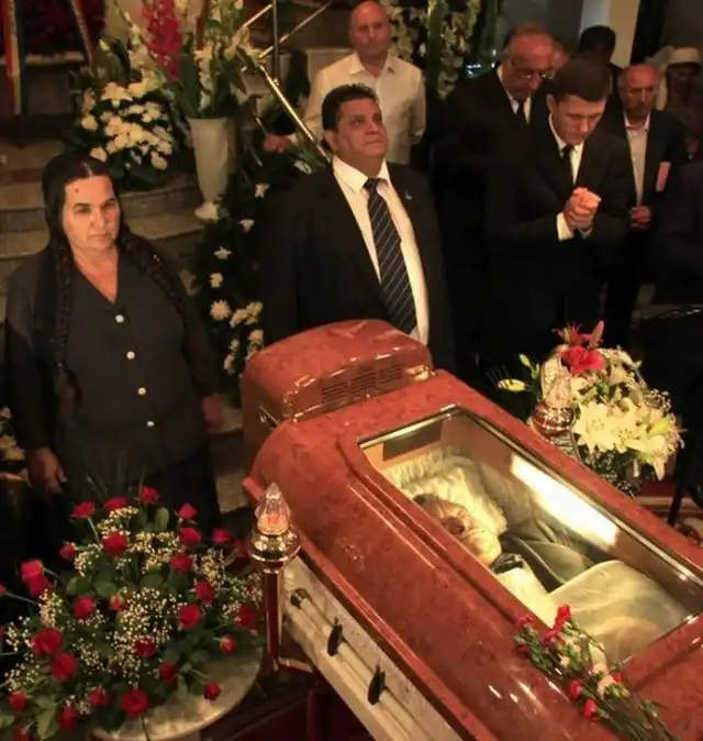 Флориана Чиоабу, скончавшегося от сердечного приступа, похоронили по-королевски в деревянном гробу (из элитных пород дерева) с предусмотренным стеклянным окном, системой кондиционирования и подсветкой.