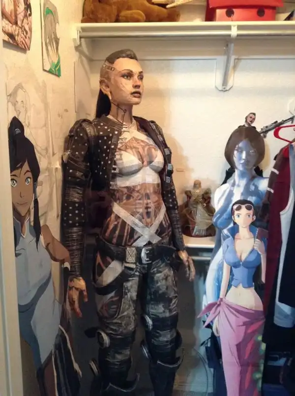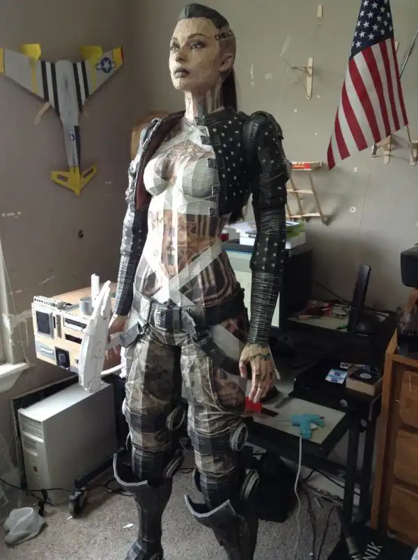 Все мы в детстве занимались бумажной аппликацией и клеили разноцветные элементы на белых листах. Это все осталось в детстве, но только не для одного фаната игры Mass Effect. Он собрал из бумаги фигуру персонажа по имени Джек в полный рост. Боюсь предположить, зачем он это сделал...