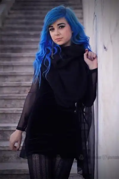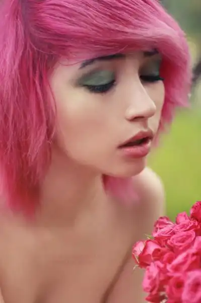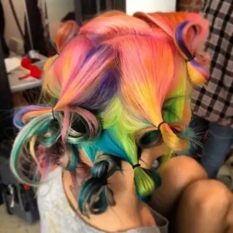 С цветными волосами.