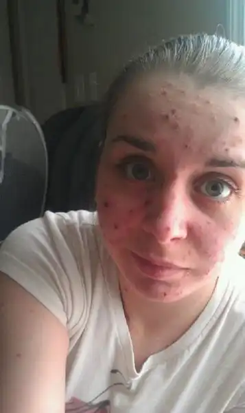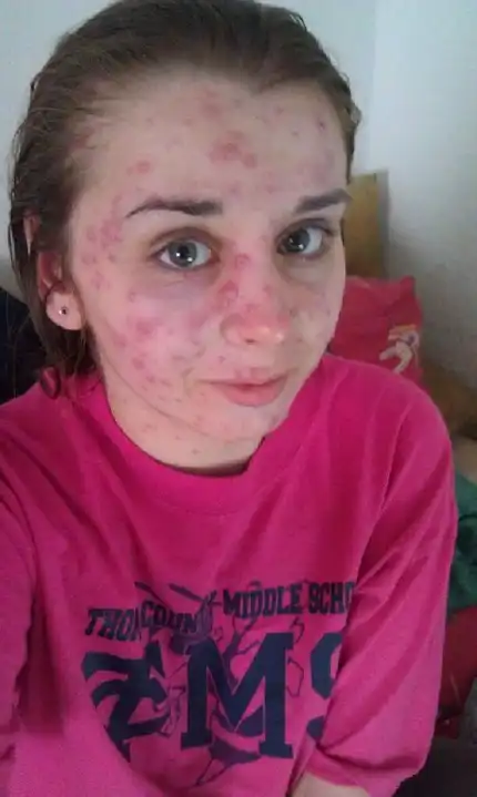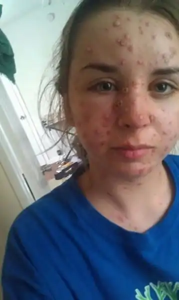 На следующий день ей поставили диагноз - "ветрянка". Это началось с трех маленькими прыщей на носу, похожих на обычные прыщи. Они сильно зудели и поэтому девушка уже на второй день сама пошла к врачу. Сказали, что ничего страшного и что через неделю пойдет.