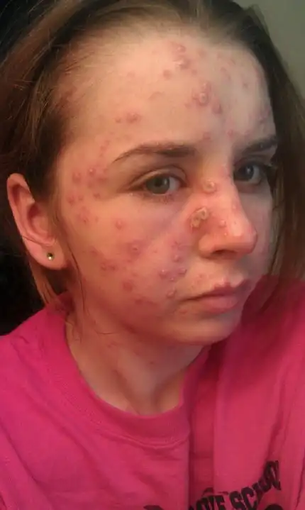 День четвертый. Прыщи увеличились в размерах и появились белые головки.