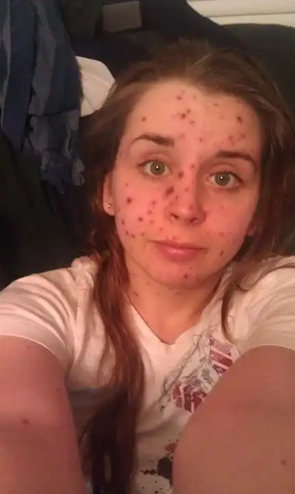 Это третий день. Прыщики начали увеличиваться и распространяться по всему телу. Это было жутко и всё зудело.