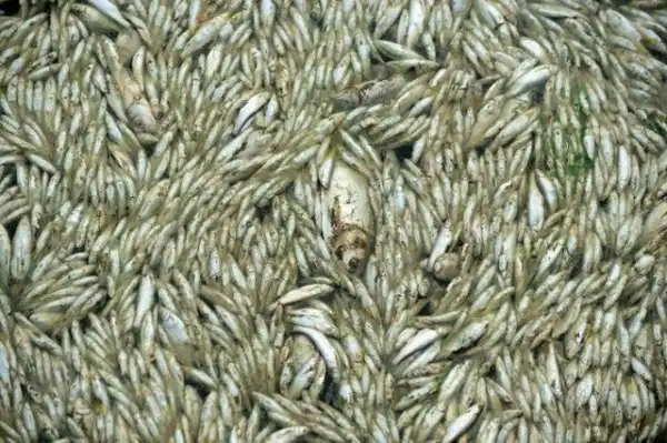 Как вы думаете, что это? Не буду вас мучать догадками - это все мертвая рыба, которая погибла в китайской реке Фухе. Рыбакам пришлось вылавливать из воды 30! тонн мертвой рыбы, которая погибла из-за масштабной "утечки" аммиака с неподалеку расположенного завода. Я не удивлюсь, если скоро на рынке появятся "свежие консервы" по "акционной" цене..