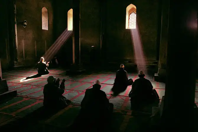 Мужчины молятся в мечети Хазратбал в Шринагаре, Кашмир, 1998 год.