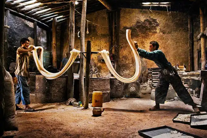 Рабочие делают сладости из сахарной пасты в Кабуле, Афганистан, 2007 год.
