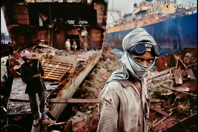 Сварщик работает на судоразборном заводе в Бомбее, Индия, 1994 год.
