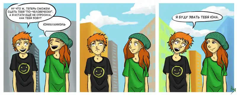 блин я думала это парень, сиськи бы хоть большими нарисовали. А то похоже на чью-то фантазию