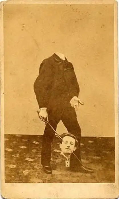 Конечно же, в 19м веке не было фотошопа, но даже в то время креативные фотографы научились редактировать снимки, отделяя голову от тела на снимке. В то время - это был настоящий "писк моды" и все стремились заполучить такие снимки ))