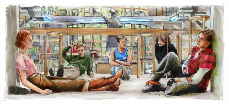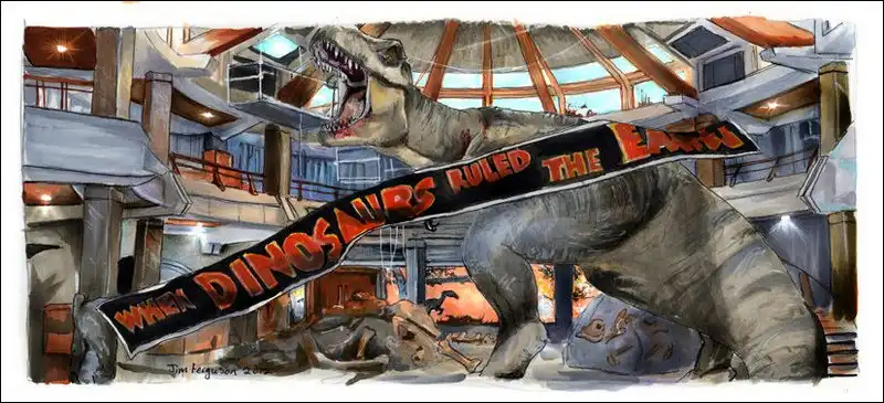 Художник Джим Фергюсон рисует хорошо знакомые любому киноману сцены из известных фильмов.