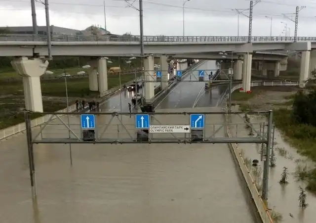 Судя по фотографиям в продолжении поста, 50 000 000 000 долларов, которые были уже потрачены на организацию подготовки к Олимпиаде в Сочи, оказалось недостаточно, чтобы защитить олимпийские развязки от сильного ливня...