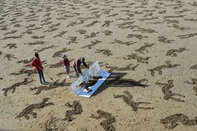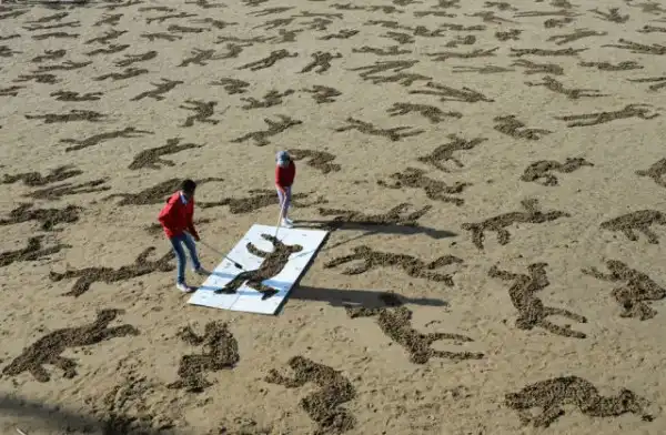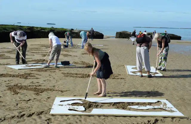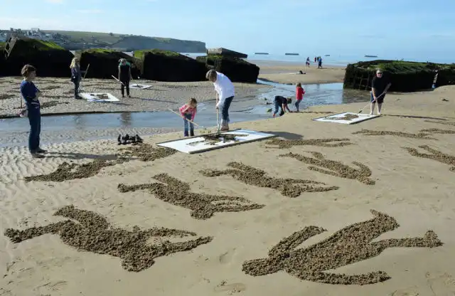 Британские художники Джереми и Энди Мосс в дань памяти солдатам погибшим во время высадки в Нормандии 1944г. создали это уникальное художественное произведение на песке.