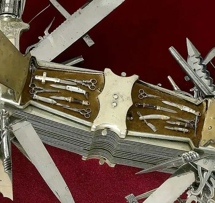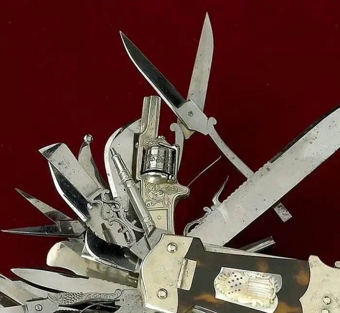 В американском штате Вайоминг, а именно в Историческом центре Баффало Билла, был представлен действительно уникальный нож. Все дело в том, что этот необычный нож состоит из более 100 деталей, которые могут использоваться для различных целей. Что самое интересное, помимо более сотни различных приспособлений в этом ноже имеется даже револьвер 22-го калибра!