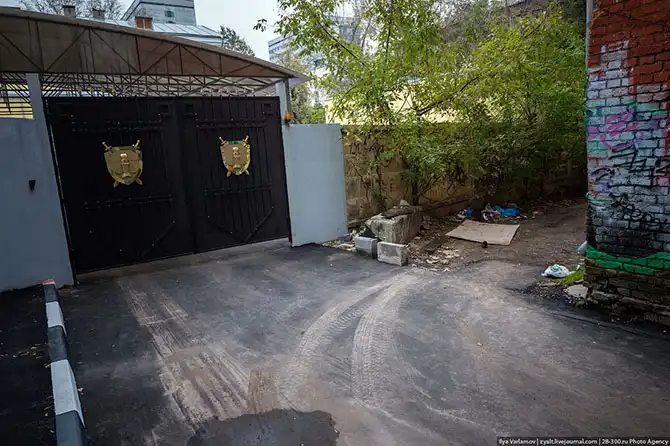 Если думаете, что здесь нельзя навести порядок, то вот вам граница дома и какой-то организации. Сразу появляется асфальт, гербы золоты, красота. (кстати, что за организация?)