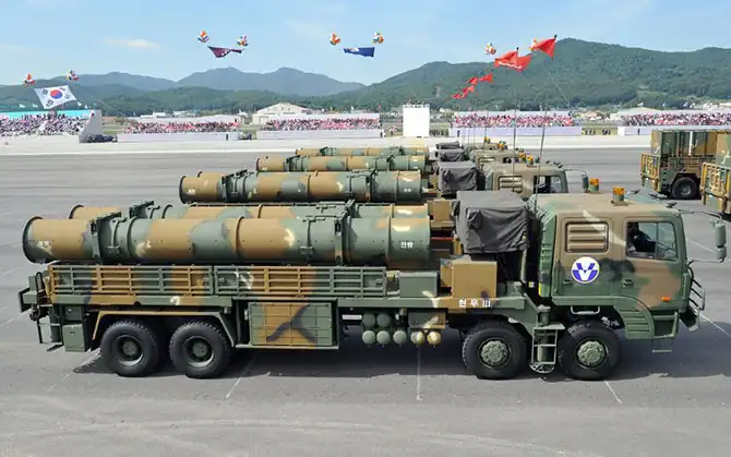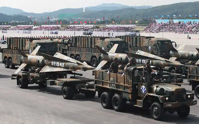 Среди оружия были представлены Hyumni-3 крылатые ракеты оснащенные GPS, которые Южная Корея недавно построила. Впервые собственно построенные ракеты были представлены публике, заявляет Министерство обороны.