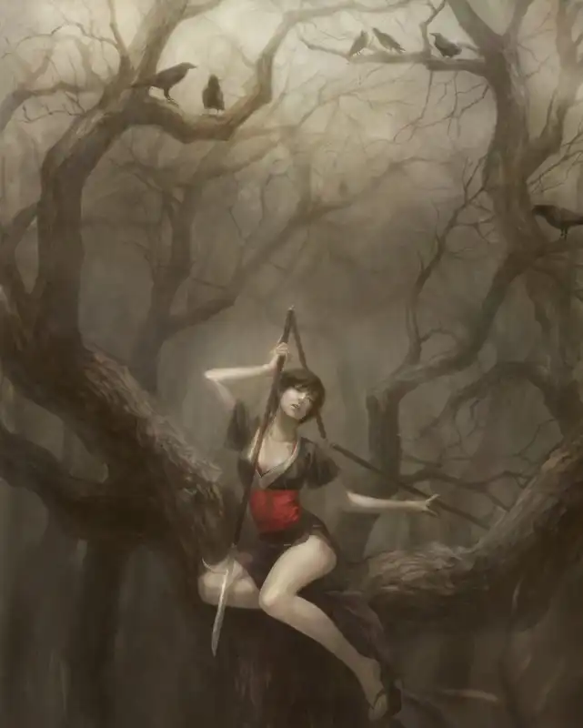 Больше всего понравилась картина, где дриада "обнимает" скелет в доспехах, минут пять любовался