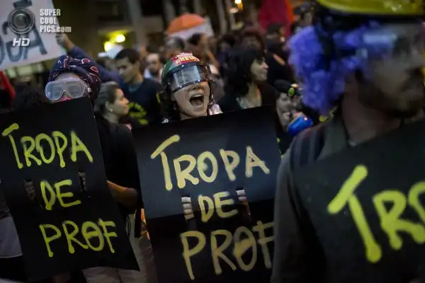 Акция протеста бразильских учителей, длящаяся около двух месяцев на улицах Рио-де-Жанейро и других крупных городов, переросла в открытое противостояние с полицией. На площади Синеландия в центре Рио-де-Жанейро на марш в поддержку учителей вышли более 10 000 человек.