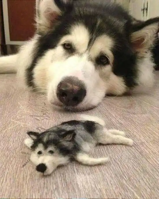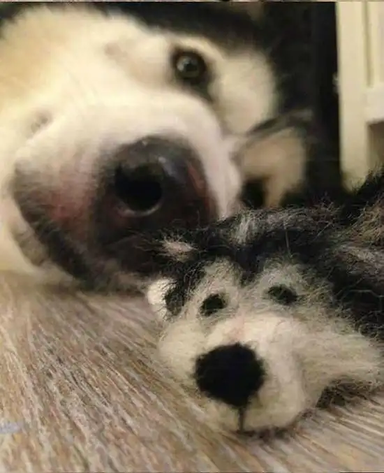 Как вы думаете будет выглядеть плюшевая Хаски, сделанная из шерсти настоящей собаки Хаски? Получилось очень мило, смотрим далее.